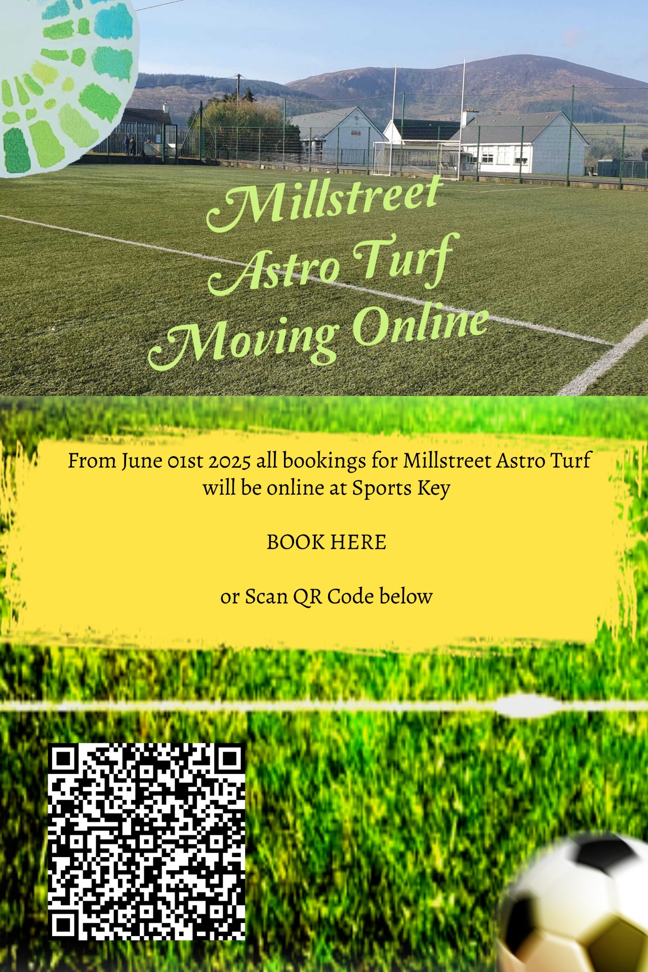 Millstreet Community Council Ltd. are moving to an online booking system for our Astro Turf Facility at West End Millstreet effective from 01st June 2025
